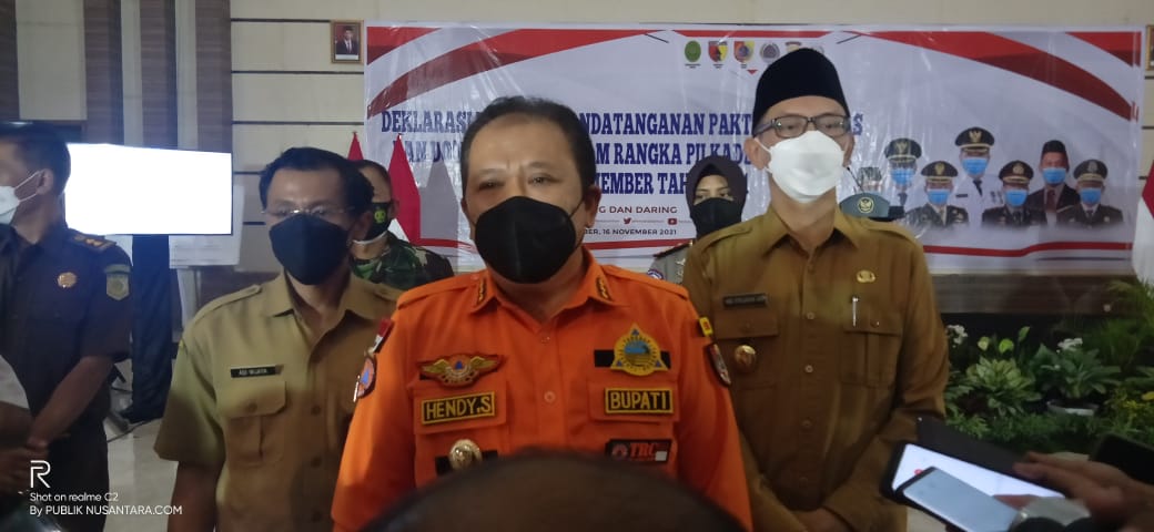 “Disinilah awal kita melakukan kebersamaan menyampaikan kepada teman-teman calon untuk mengikuti komitmen dan ini tujuan deklarasi damai, sekaligus penandatanganan pakta integritas,”ucap Bupati Hendy.