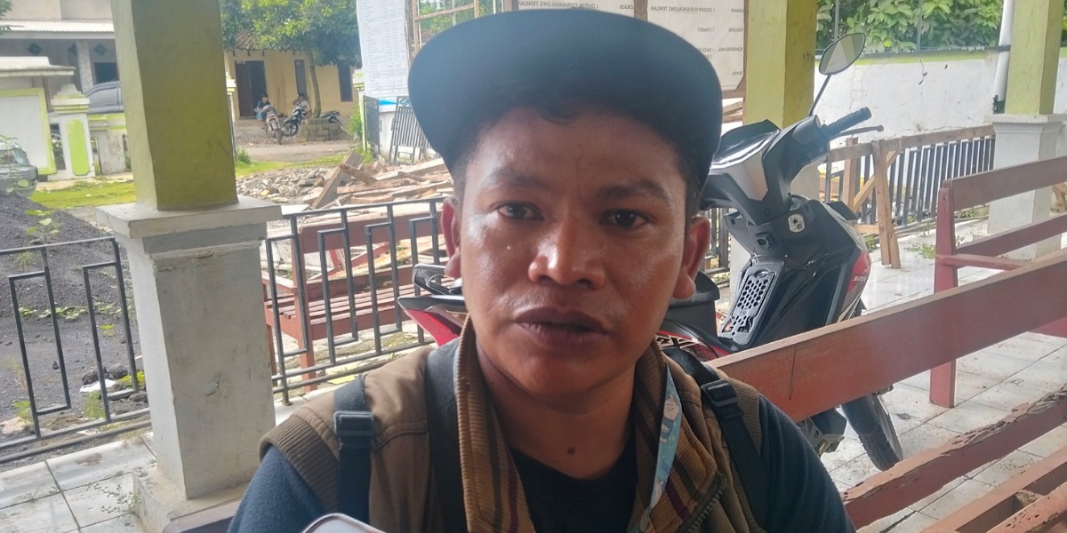 Ahmadi warga desa setempat sekaligus pelapor mendampingi tim inspektorat untuk melakukan pengukuran pondasi proyek pembangunan tata ruang.