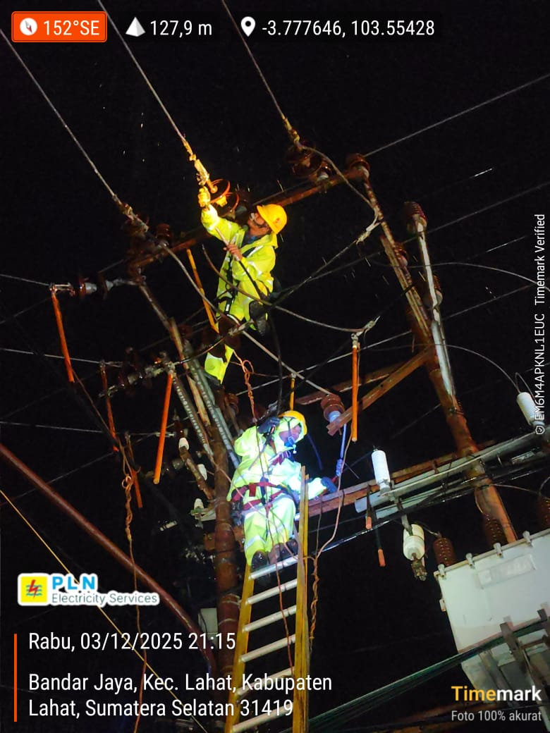 Rabu, 03 Desember 2025 wilayah Kabupaten Lahat dilanda hujan deras disertai angin, hujan tersebut menyebabkan kerusakan pada jaringan listrik dan kabel listrik putus di sejumlah wilayah kabupaten Lahat. Personil PLN ULP Lembayung merespon kejadian tersebut dan bergerak cepat untuk memulihkan kondisi kelistrikan di wilayah Kabupaten Lahat saat hujan turun dengan tetap menjaga prinsip K3 (Keselamatan dan kesehatan Kerja) dalam menjalankan tugasnya.
